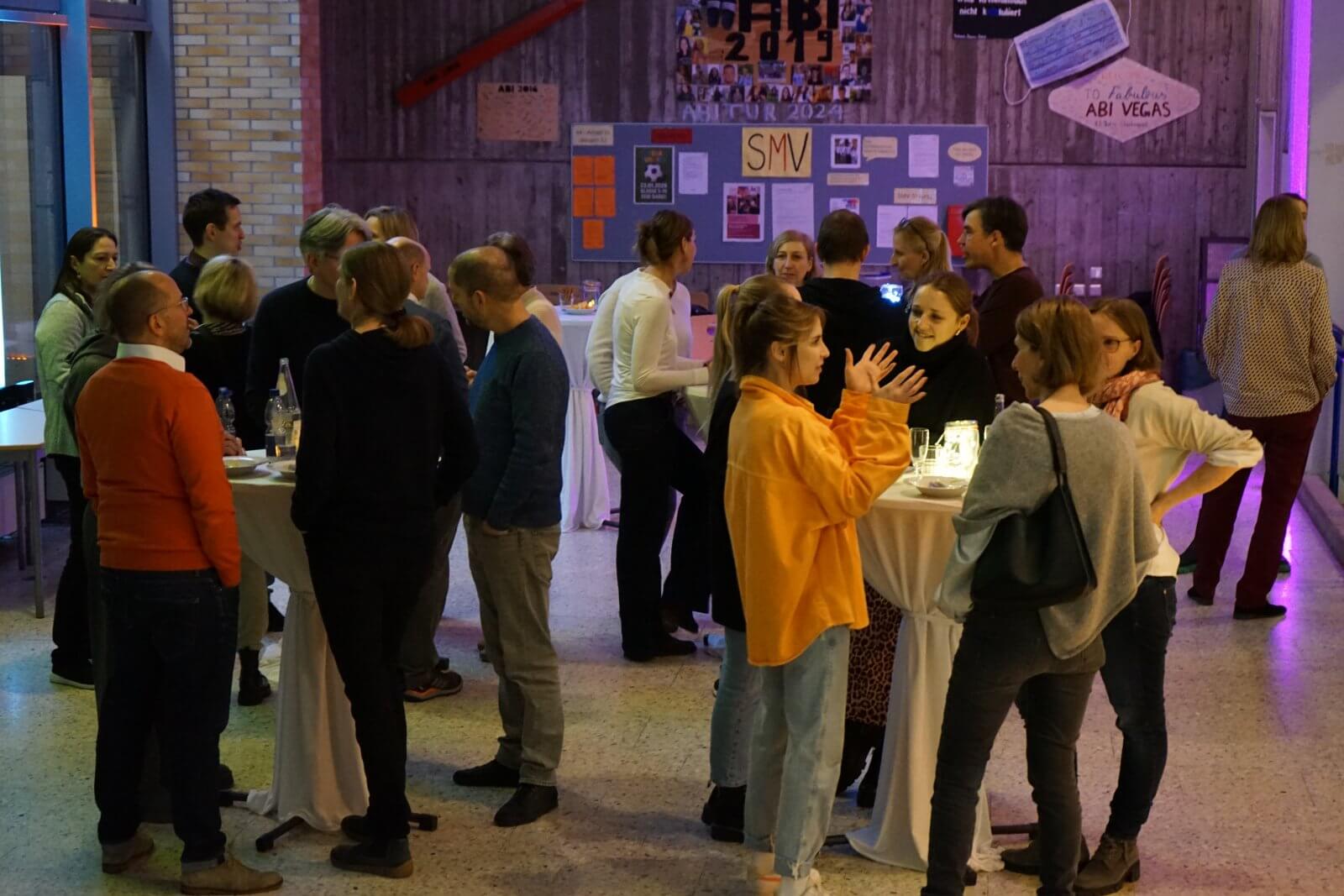Am gestrigen Abend, 14. Januar, luden die Elternbeiratsvorsitzenden, Herr Küfner und Frau Erhard, zum Neujahrsempfang ein. In einer kurzen Ansprache dankten sie den Eltern für die stets konstruktive Mitarbeit sowie den Lehrkräften für die vertrauensvolle Zusammenarbeit. Besonders hervorgehoben wurde die starke Schulgemeinschaft, die sich nicht zuletzt in der engen und erfolgreichen Kooperation von Eltern und Lehrkräften bei der Vorbereitung des Schuljubiläums gezeigt hat. Im Rahmen des Empfangs würdigten sie das Engagement der ehemaligen Elternbeiratsvorsitzenden. Auch die Schulleiterin, Frau Schwahn, richtete im Namen des Kollegiums Dankesworte an die Elternbeiratsvorsitzenden und bedankte sich für die angenehme, offene und inhaltlich gewinnbringende Zusammenarbeit. Zugleich verabschiedete sie Frau Horner mit Blumen und einem kleinen Geschenk und dankte ihr für drei Jahre konstruktive Arbeit im Dienst der Schule. Dabei betonte sie, dass Frau Horner stets nicht nur die Interessen der Eltern, sondern auch die der Schule im Blick gehabt habe. Im Anschluss wurde auf das neue Jahr angestoßen und das Büffet mit einer leckeren Kartoffelsuppe eröffnet. Wir danken den Elternbeiratsvorsitzenden und allen anderen Eltern, die bei der Vorbereitung des Abends mitgeholfen haben, ganz herzlich. Er war ein voller Erfolg!
