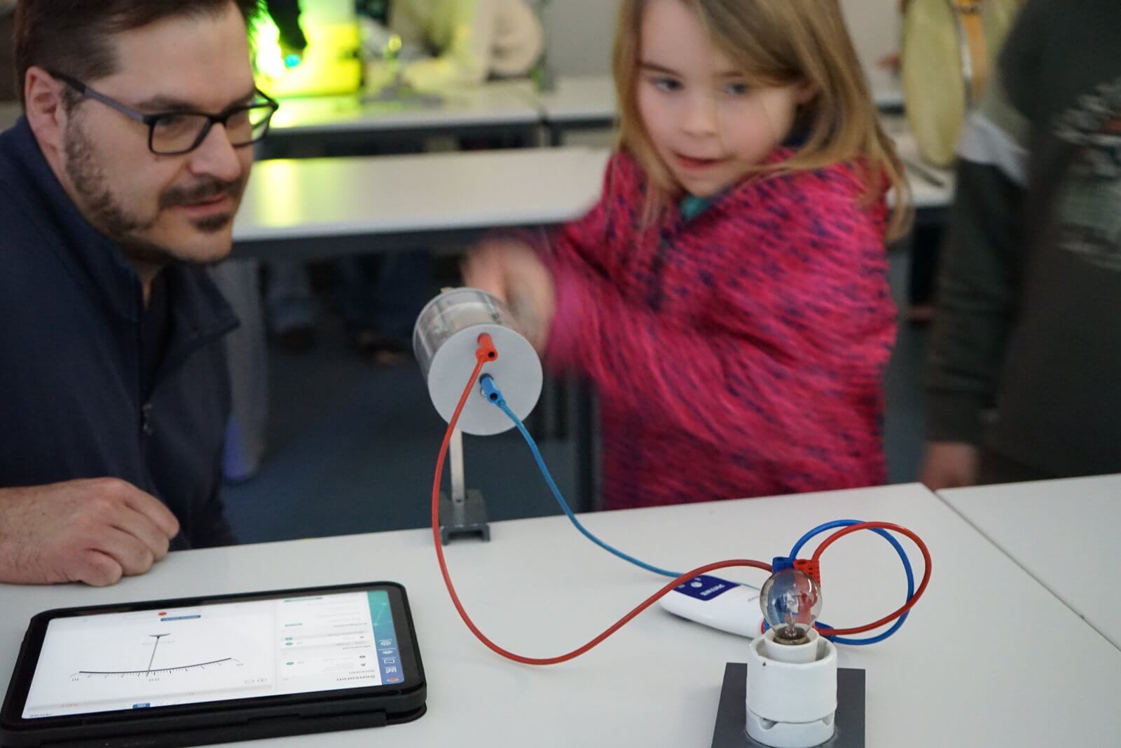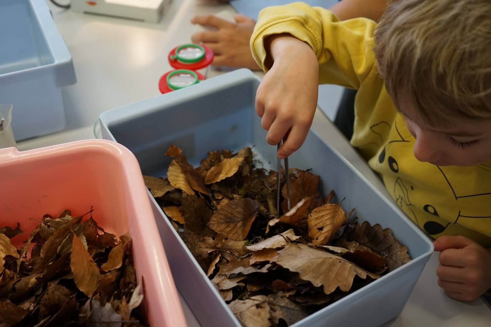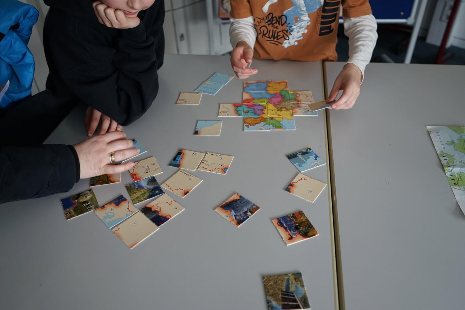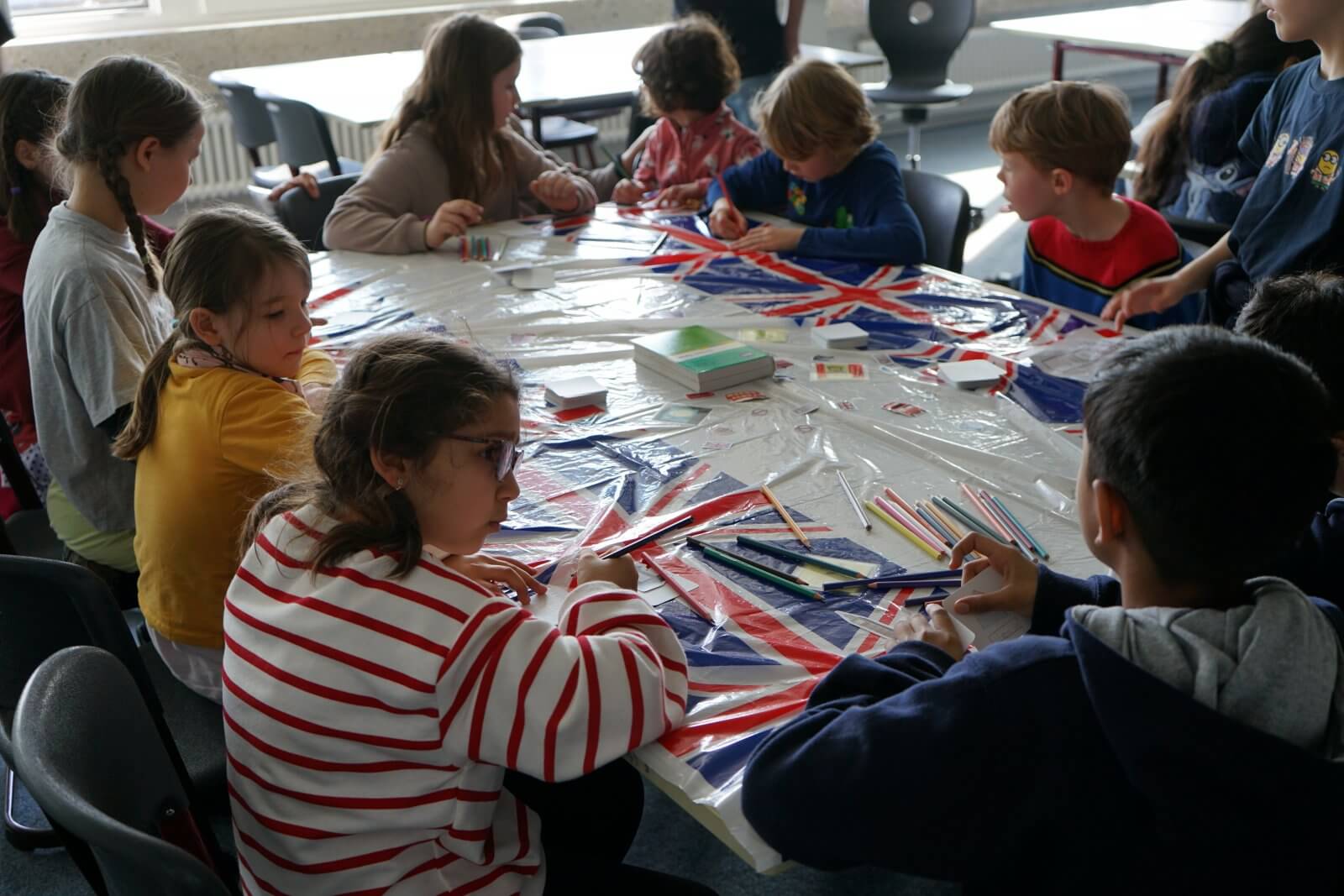 Nach einer ansprechenden Begrüßung durch die Schulband mit „Tau mich auf“ und einem kurzen, informativen Vortrag der Schulleiterin Frau Schwahn begaben sich kleine und große Besucherinnen und Besucher auf Erkundungstour durch das Schulhaus. Es erwarteten sie dort abwechslungsreiche und unterhaltsame Mitmach-und Informationsangebote, präsentiert und entwickelt von zahlreichen engagierten Schülerinnen und Schülern und ihren Lehrerinnen und Lehrern: Im Naturwissenschaftsstrakt konnte man staunend in die „Welt der Physik“ eintauchen, Laubstreu mit dem Binokular untersuchen oder eine beeindruckende feurig-märchenhafte Chemie-Show erleben; in der gemütlich eingerichteten Schulbibliothek waren sprachdetektivische Fähigkeiten gefragt, derweil die Italienischfachschaft mit Eis und Espresso und die Französischfachschaft mit frisch gebackenen Crepes lockte; mathematische Knobeleien sowie spannende Quizaufgaben zu Frankreich, England, Italien und zum alten Rom bereiteten großen Spaß, ebenso das Basteln eines Globus‘, das Balancieren am „heißen Draht“ oder Rollenspiele in der Verkleidung eines römischen Gladiators. Begeisterten Applaus ernteten die Kinder des bilingualen Zugs der 5a, die in beeindruckend flüssigem Englisch drei witzige Theaterstücke zur Aufführung brachten. Wer wollte, konnte sich von freundlichen Schülerlotsen durchs Schulhaus führen lassen oder den Eltern der Schule Fragen stellen und ehrliche Antworten bekommen. Die Eltern der Klassen 6 hatten leckere Kuchen gebacken und Kaffee gekocht und luden damit zum Verweilen ein.