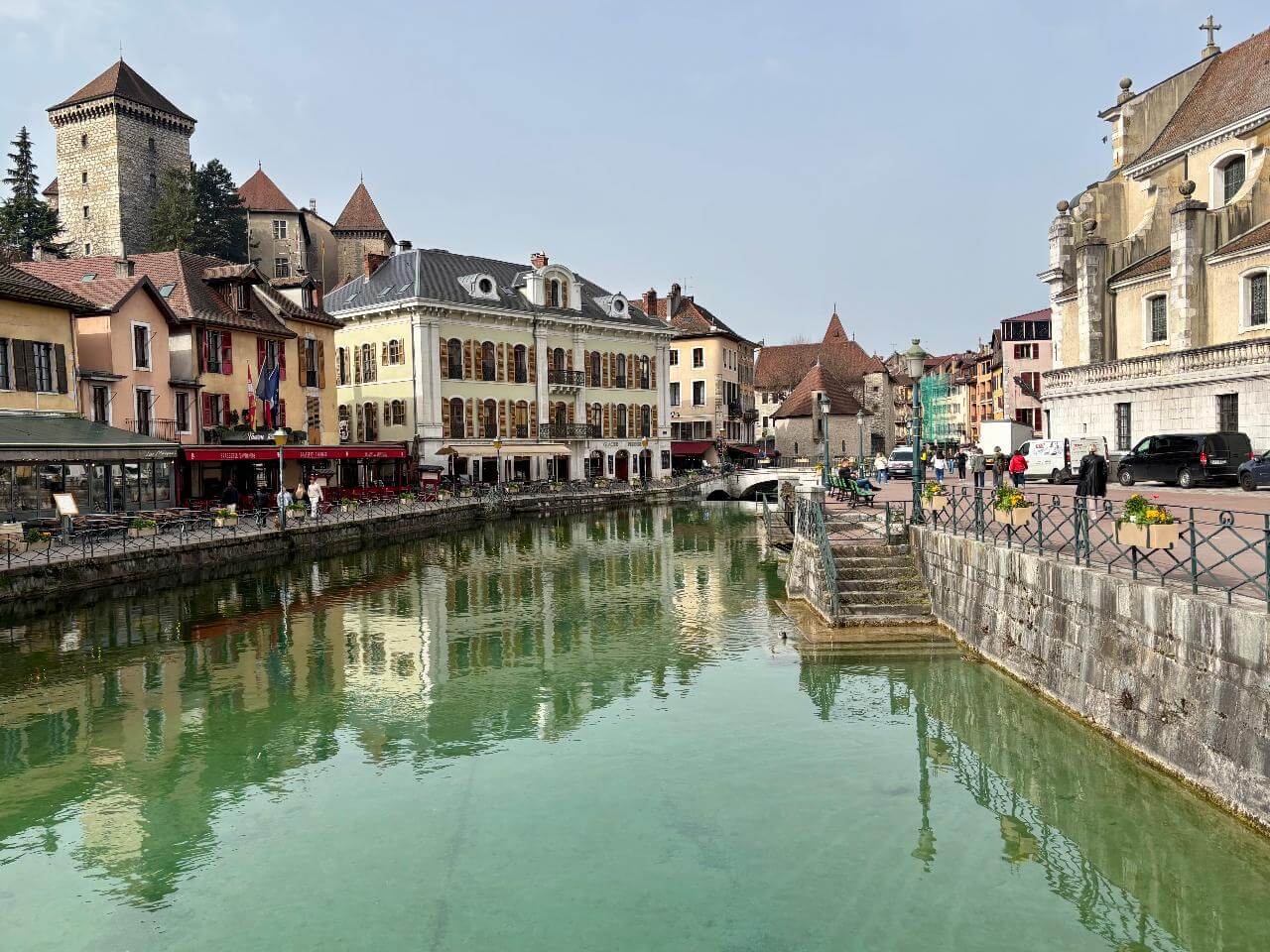 Am Donnerstag (5.3.) fuhren wir gemeinsam mit den französischen Schülern mit dem Bus nach Annecy. Die Stadt beeindruckte uns sofort, da sie sehr schön ist und viele kleine Kanäle zwischen den Häuserreihen verlaufen, weshalb sie auch als „Venedig der Alpen“ bezeichnet wird. Während unseres Aufenthalts besichtigten wir das Palais de l’Île, ein ehemaliges Gefängnis, sowie das Château d’Annecy, eine alte Burg. Danach hatten wir etwas Freizeit, um die Stadt selbst zu erkunden. Anschließend spielten wir zusammen mit den französischen Schülern ein Stadtspiel, das viel Spaß gemacht hat. Besonders schön war auch die Aussicht auf den Lac d’Annecy, der mit seinem klaren Wasser beeindruckte.